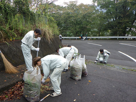 雨の影響で落ち葉が地面にくっついていたりと、除去作業が大変